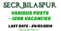 South East Central Railway (SECR) Bilaspur, Railway Recruitment Cell (RRC) issued Open Market Recruitment for filling up Total 1206 Various Posts. Eligible Candidates apply on the prescribed format on or before 24th January 2014.