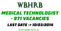 West Bengal Health Recruitment Board (WBHRB) Kolkata invites Online applications from eligible Indian National candidates for recruitment of Medical Technologist Cadre of the West Bengal Sub-ordinate Health Services under Health & Family Welfare Department, Government of West Bengal. Diploma passed candidates are required to register online between 17th February 2014 to 10th March 2014.