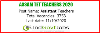 SSA Assam Assistant Teacher Recruitment 2020: Axom Sarba Siksha Abhiyan Mission (SSA) Government of Assam invites online applications from Assam TET qualified candidates for 3753 vacancy posts of Assistant Teachers at Lower Primary and Upper Primary School on contractual basis under the Assam Axom Sarba Siksha Abhiyan Mission. The Assam Teacher Recruitment 2020 online apply @ formonline.net/TET_Ast_Teacher, last date is 11th October 2020.