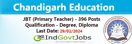 Chandigarh Administration, Education Department Recruitment Notification for the posts of Junior Basic Teachers (JBT) 2024 - Advertisement No. 6/2023: The Education Department, Chandigarh Administration, invites online applications from eligible candidates to fill up 396 posts of Junior Basic Teachers (JBTs) or Primary Teachers, Class V, on a regular basis. The online registration for Chandigarh JBT Vacancy 2024 starts from 24th January 2024, and the last date for the submission of online applications is 29th February 2024.